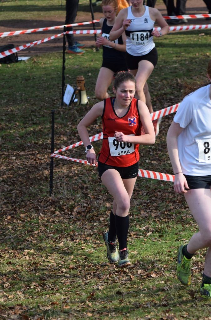 Highlight of the day was Nina Clark, running for Duncanrig, finishing a superb 3rd in the Under 15 girls race over 4k. Nina now adds a bronze medal to her collection of championship medals & gains selection to the Scottish team for the SIAB international to be held in Wales at the end of this month.